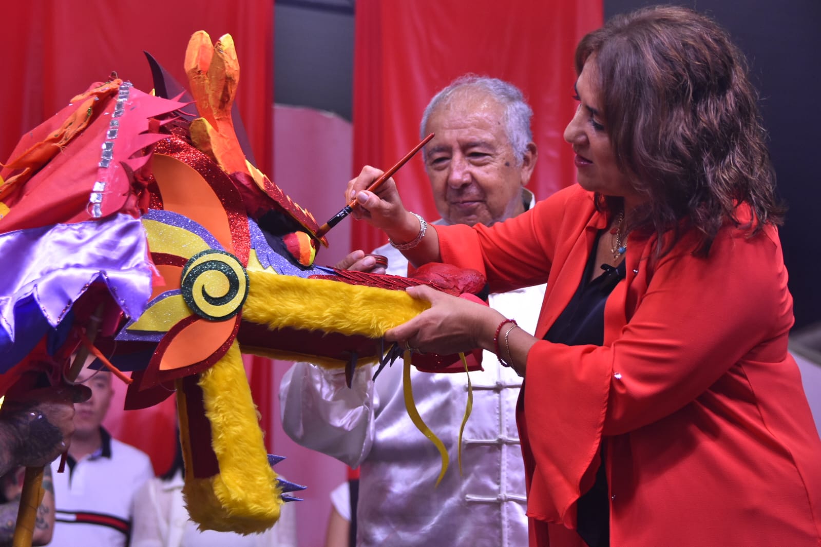 Uno de los momentos más significativos fue la ceremonia del pintado del dragón o “clavado de pupilas”, que en esta ocasión fue realizado por la Intendenta Alejandra Rodriguez. Este ritual tradicional simboliza el despertar del dragón para activar su energía festiva, atraer salud y buena fortuna, y proteger a la comunidad. En el Año 4724, correspondiente al Caballo de Fuego, el acto adquirió un significado especial orientado a asegurar prosperidad y alejar los malos espíritus.