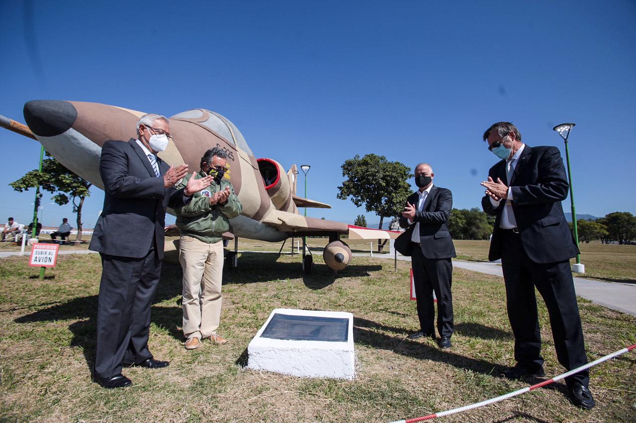 El acto contó con un invitado especial el General Aurelio Crovetto Yáñez, ex piloto peruano que colaboró con las Fuerzas Armadas Argentinas durante el desarrollo de la guerra a quien le entregaron la llave de la cuidad por el compromiso con nuestra nación. Así mismo, se descubrieron dos placas, una por los 40 años desde que estalló el conflicto bélico y otra, para homenajear a los Halcones.
