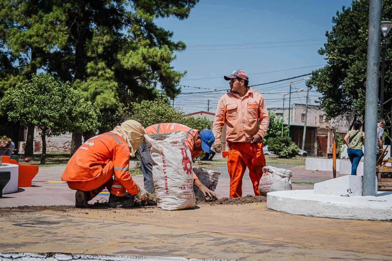 Durante la jornada se realizaron pintura de cordón cuneta y bancos de descanso, el reemplazo de luminarias de sodio por luces LED de 50 watts, tareas de revalorización de juegos infantiles, además de forestación con nuevo arbolado y plantas de estación, acciones que aportaron mayor seguridad, accesibilidad y un entorno más agradable para las familias que diariamente utilizan el espacio.