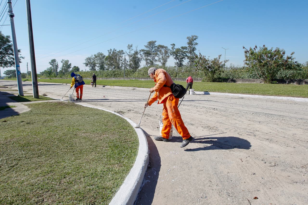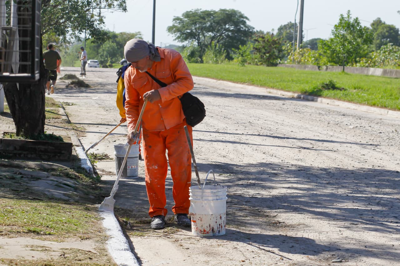 Durante la jornada se realizaron tareas de desmalezamiento en distintos puntos de los barrios, eliminando focos de acumulación de residuos y vegetación. Además, se llevó a cabo la pintura de cordones para ordenar el tránsito y embellecer el entorno urbano.