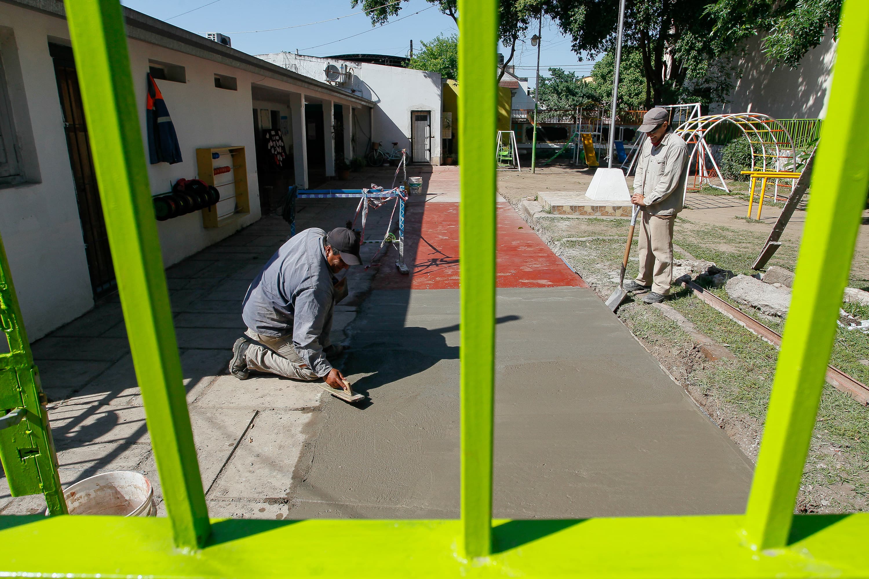 Además del trabajo en el suelo, se realizaron tareas de pintura en las rejas y todos los juegos del establecimiento, lo que transformó el lugar en un entorno más atractivo, higiénico y acorde a las necesidades pedagógicas del nivel inicial.