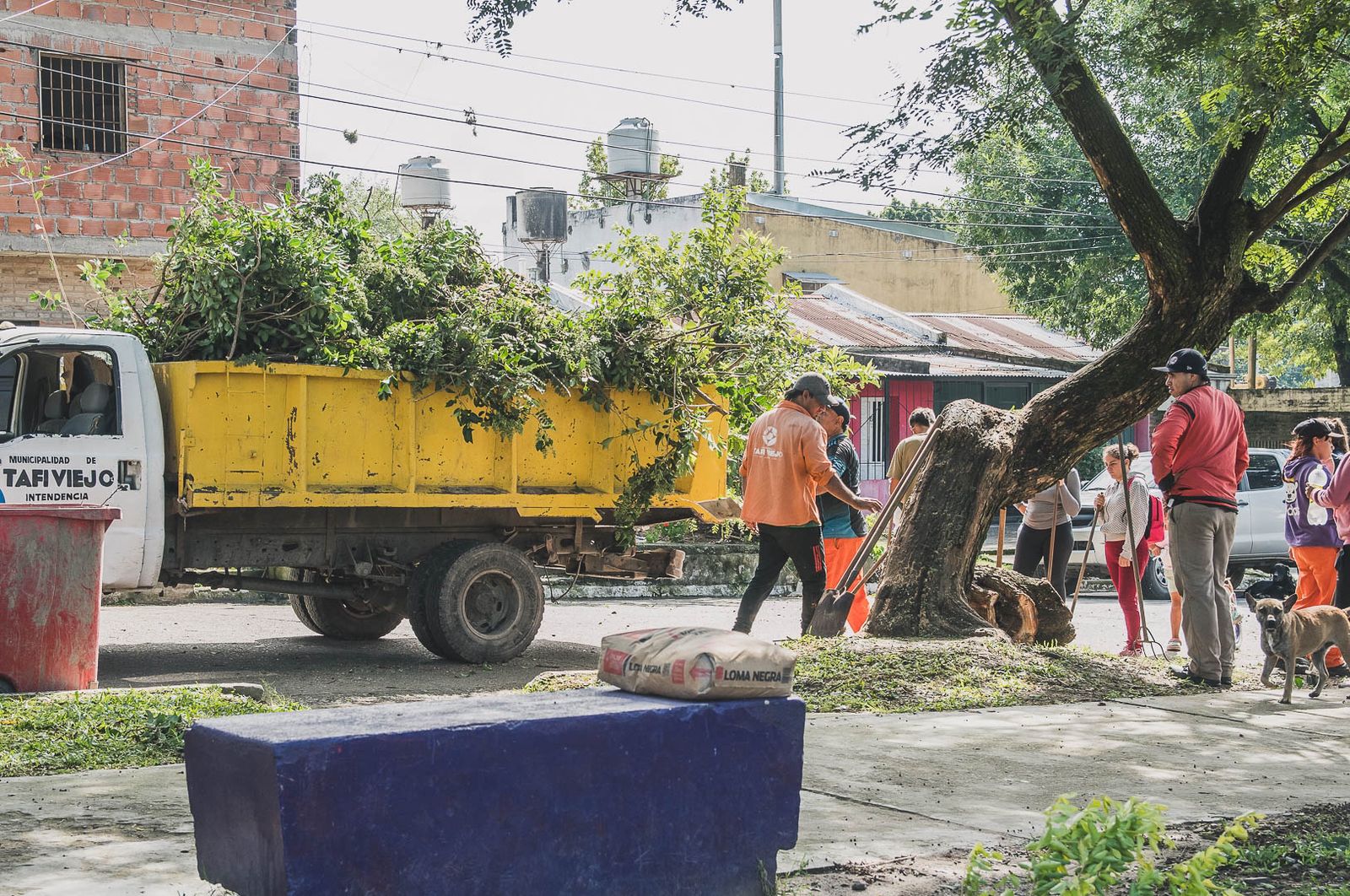 En el lugar se ejecutaron tareas de reacondicionamiento de juegos infantiles, poda de arbolado y plantación de nuevas especies. También se colocaron cestos para residuos, se realizó un Ecocanje y fumigación en espacios públicos y viviendas.
