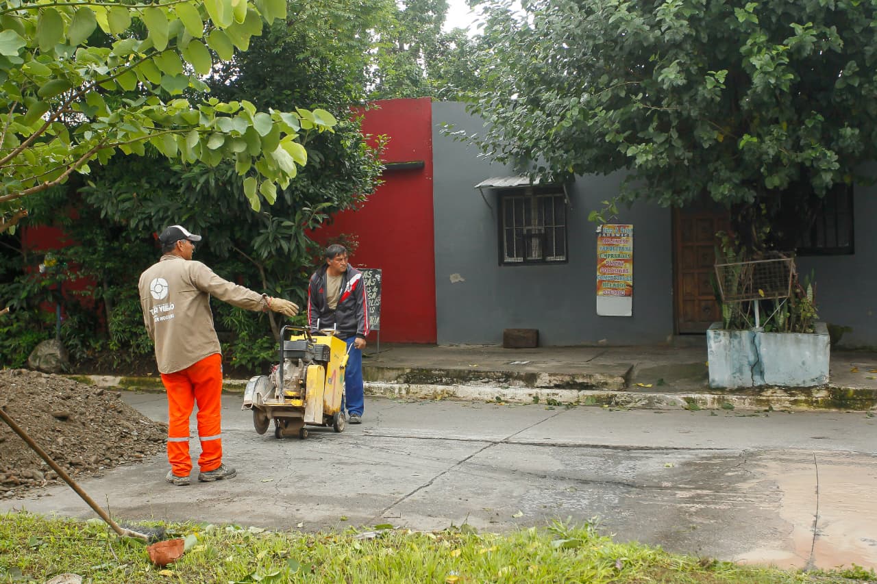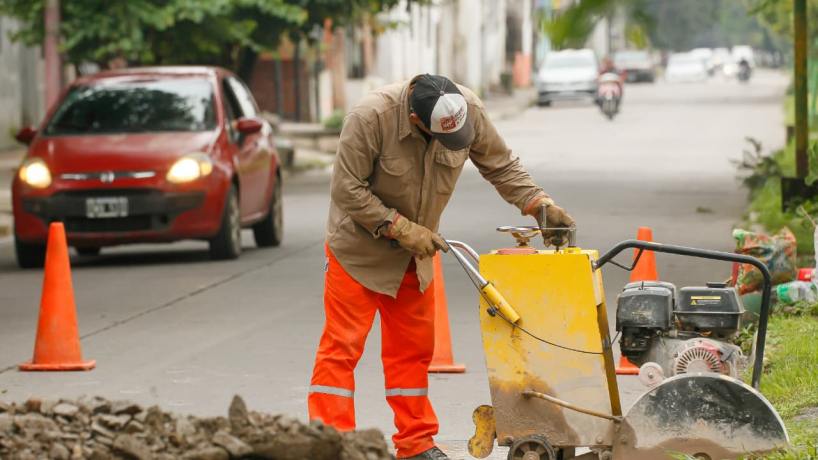 Por otro lado, se avanzó con trabajos de bacheo en puntos estratégicos como Larrabure al 800 y 890, y en la intersección de Perú y Rioja, mejorando las condiciones de circulación vehicular.
