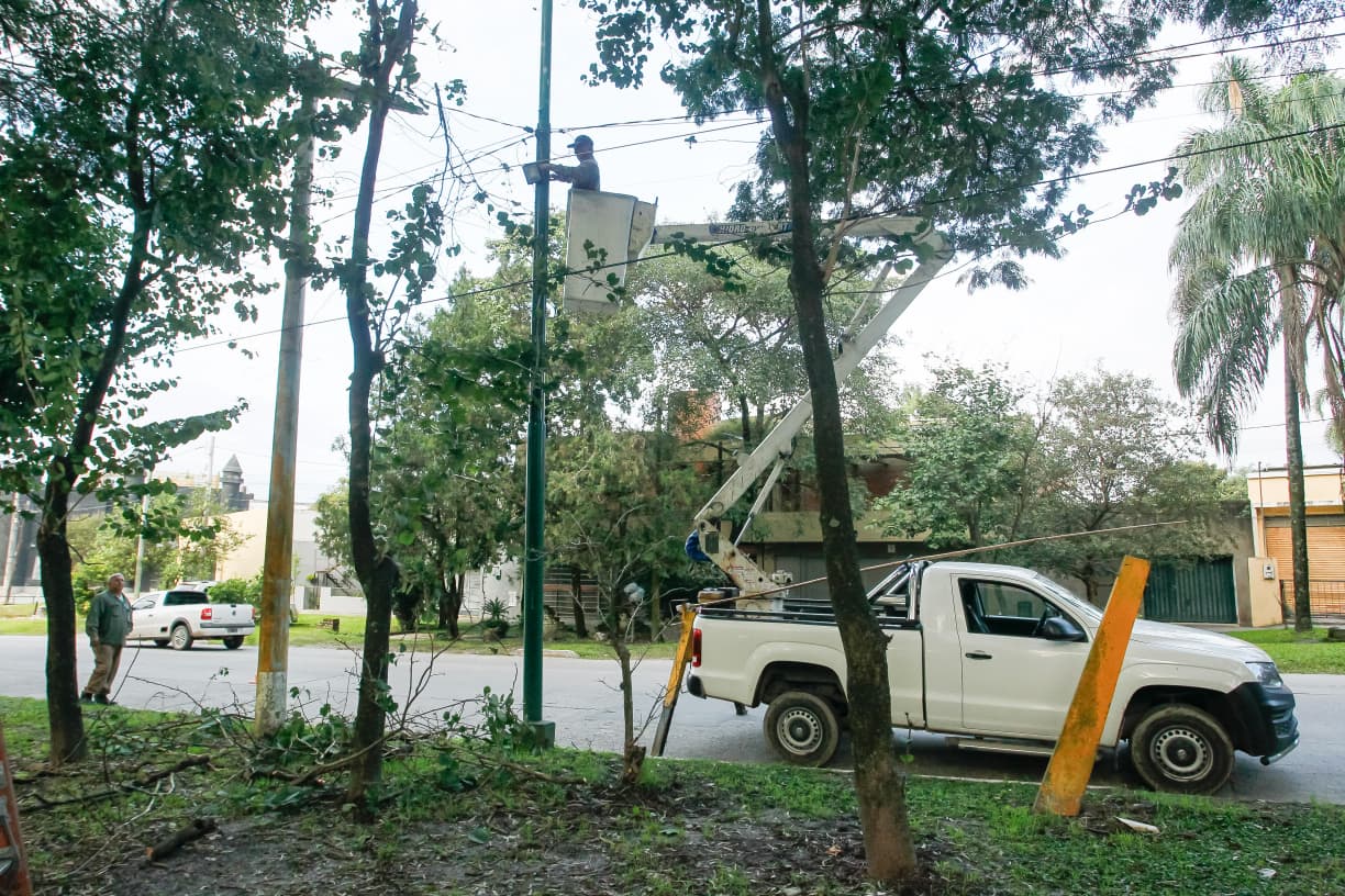 Entre las tareas destacadas, se realizó un operativo de limpieza y colocación de nueva iluminación en los alrededores de la iglesia Inmaculada, sobre la vereda de avenida Perú, donde se instalaron 15 luminarias, reforzando la seguridad en la zona.