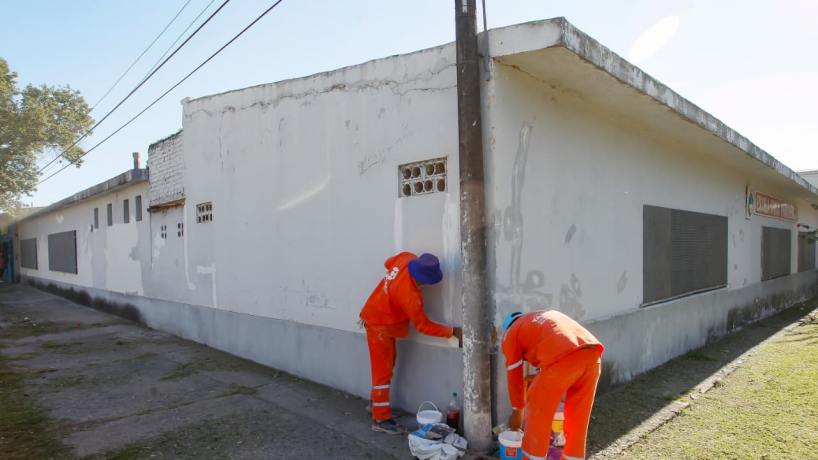 Los operarios municipales realizaron tareas de pintura en la Escuela Divina Providencia, contribuyendo a poner en valor la institución y brindando un entorno más limpio y agradable para estudiantes y docentes.