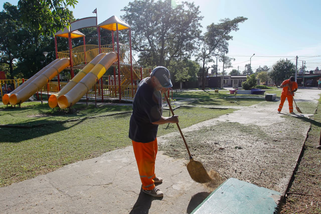 De manera paralela, se efectuaron trabajos de corte de césped y acondicionamiento general de la plaza de la zona, permitiendo que las familias puedan disfrutar de un espacio seguro, ordenado y accesible. Estas acciones se complementan con las políticas de mantenimiento continuo que impulsa el municipio para fortalecer los espacios verdes de la ciudad.