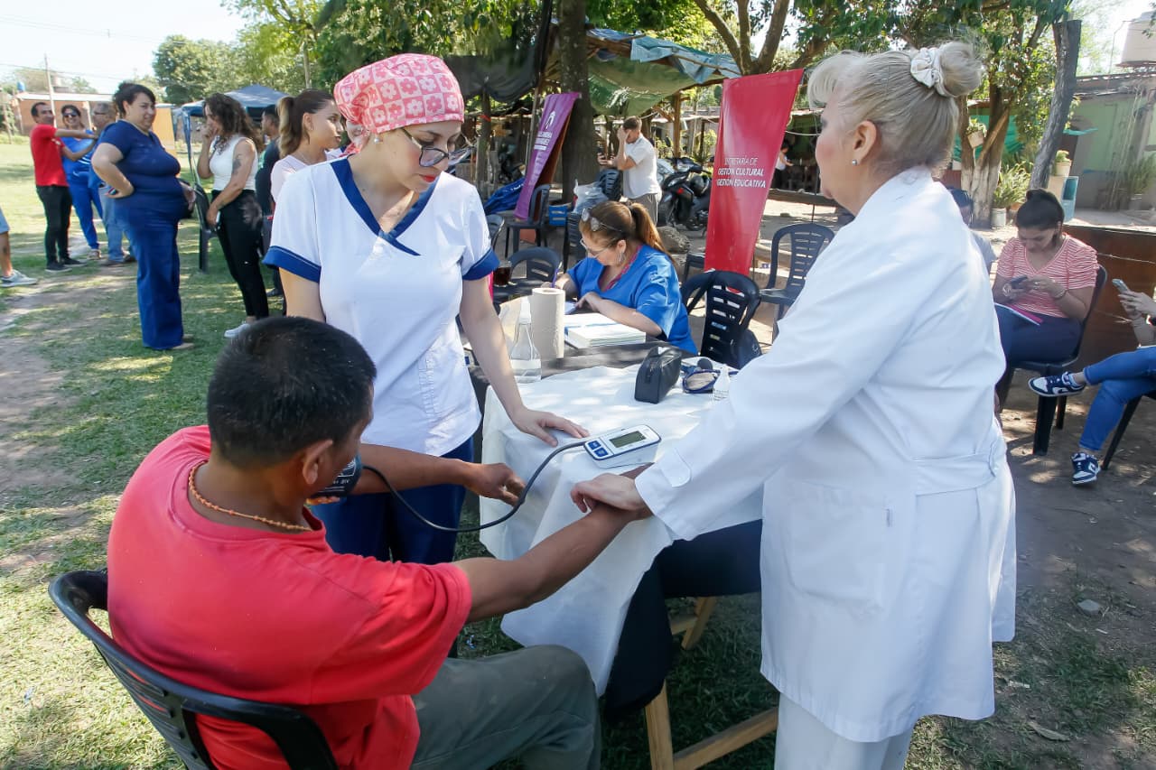 El equipo sanitario trabajó en la zona realizando control focal contra el dengue. “Visitamos los hogares, eliminamos los cacharros y cualquier elemento que pueda acumular agua”, explicó Andrés Álvarez, coordinador de Agentes Sanitarios. Además, detalló que se efectuaron encuestas para detectar posibles casos de diabetes y enfermedades cardíacas, junto a controles de peso, talla y estado nutricional de los niños.